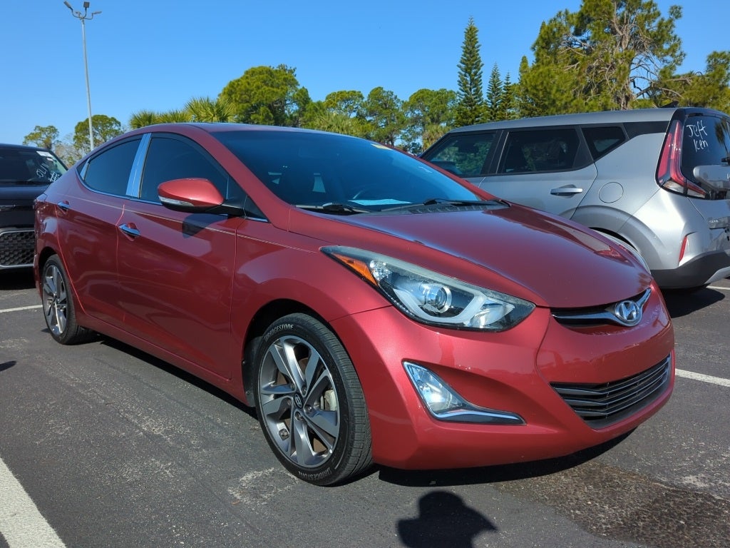 2016 Venetian Red Hyundai Elantra Limited This Hyundai Elantra has many features and is well equipped including, 17 Alloy Wheels, 4-Wheel Disc Brakes, 6 Speakers, ABS brakes, Air Conditioning, Alloy wheels, AM/FM radio: SiriusXM, Automatic temperature control, Brake assist, Bumpers: body-color, Cargo Net, Carpeted Floor Mats, CD player, Delay-off headlights, Driver door bin, Driver vanity mirror, Dual front impact airbags, Dual front side impact airbags, Electronic Stability Control, Emergency communication system: Blue Link, Exterior Parking Camera Rear, First Aid Kit, Front anti-roll bar, Front Bucket Seats, Front Center Armrest, Front dual zone A/C, Front fog lights, Front reading lights, Front wheel independent suspension, Fully automatic headlights, Heated door mirrors, Heated Front Bucket Seats w/Lumbar Support, Heated front seats, Heated rear seats, Illuminated entry, Leather Seating Surfaces, Limited Ultimate Package, Low tire pressure warning, Occupant sensing airbag, Option Group 04, Outside temperature display, Overhead airbag, Overhead console, Panic alarm, Passenger door bin, Passenger vanity mirror, Power door mirrors, Power driver seat, Power steering, Power Sunroof w/Tilt & Slide, Power windows, Radio: AM/FM/SiriusXM/CD/MP3 Audio System, Radio: AM/FM/SiriusXM/CD/MP3 w/Navigation, Rear anti-roll bar, Rear Bumper Applique, Rear seat center armrest, Rear window defroster, Remote keyless entry, Security system, Speed control, Speed-sensing steering, Split folding rear seat, Steering wheel mounted audio controls, Tachometer, Telescoping steering wheel, Tilt steering wheel, Traction control, Trip computer, Turn signal indicator mirrors, Variably intermittent wipers.