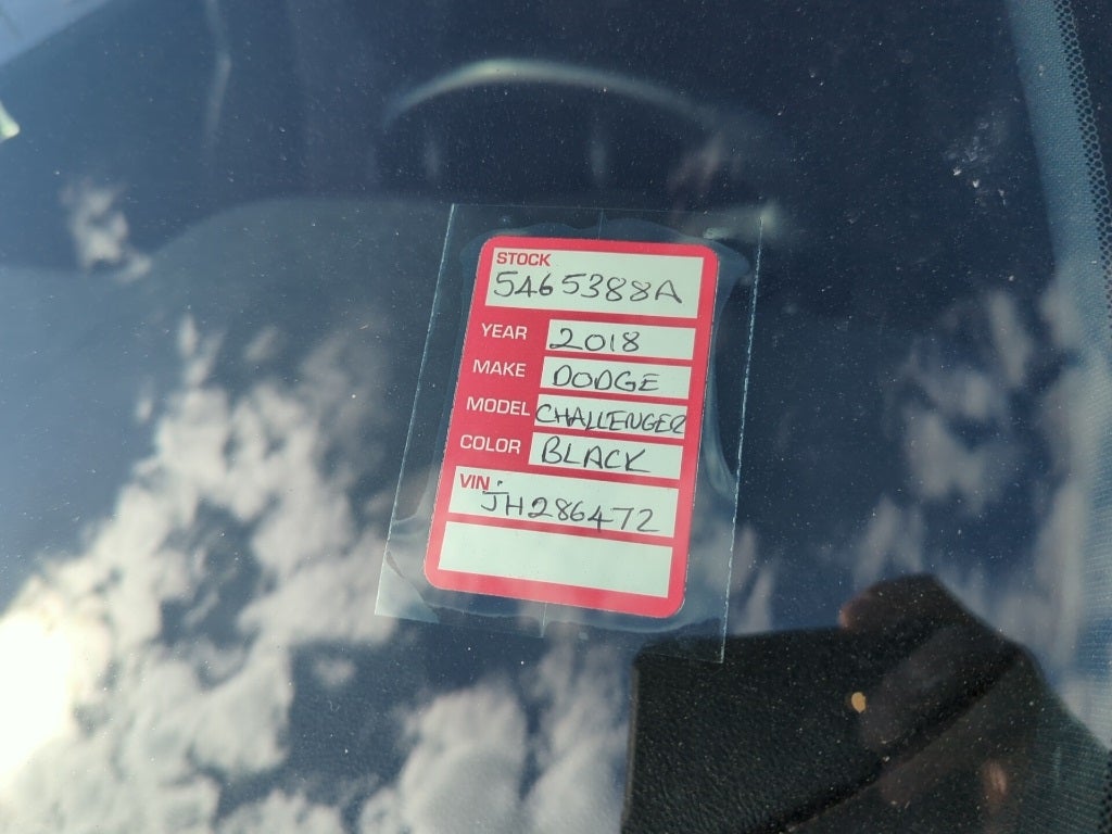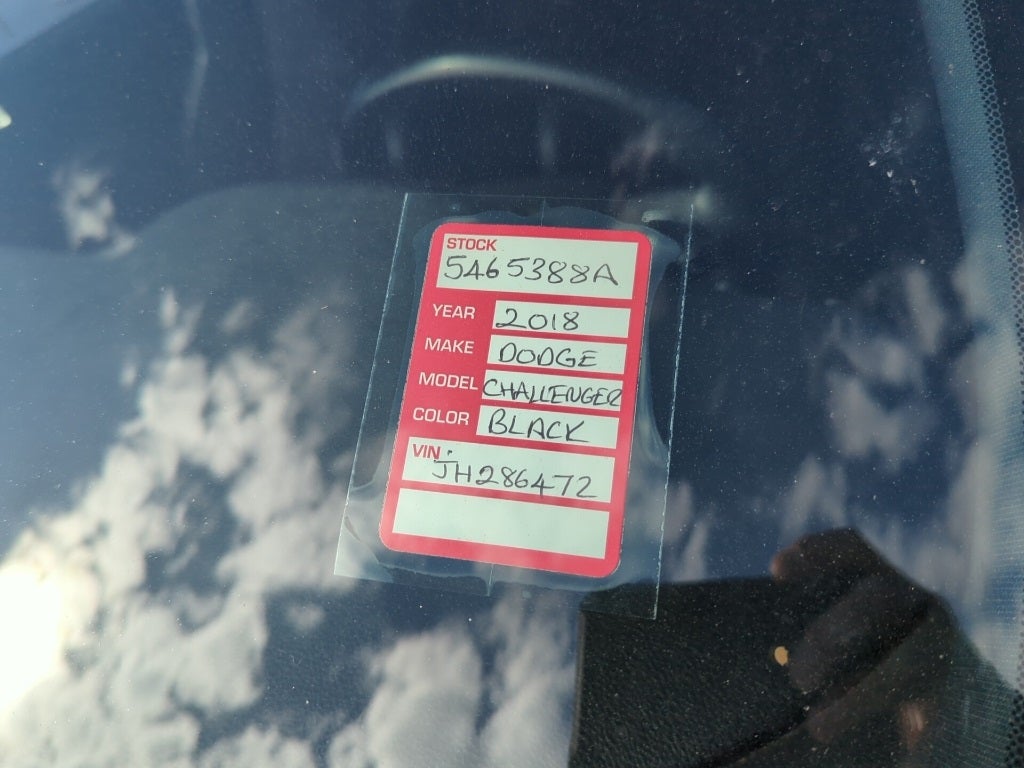 2018 Pitch Black Clearcoat Dodge Challenger R/T ABS brakes, Alloy wheels, Compass, Electronic Stability Control, Front dual zone A/C, Gloss Black I/P Cluster Trim Rings, Heated door mirrors, Illuminated entry, Low tire pressure warning, ParkView Rear Back-Up Camera, Remote keyless entry, Shakedown Graphics, Shakedown Package, Shaker Graphics, Traction control, White Face Instrument Cluster, 4-Wheel Disc Brakes, 6 Speakers, Air Conditioning, AM/FM radio, Anti-whiplash front head restraints, Apple CarPlay, Apple CarPlay/Android Auto, Auto-dimming Rear-View mirror, Automatic temperature control, Brake assist, Bright Pedals, Bumpers: body-color, Delay-off headlights, Driver door bin, Driver vanity mirror, Dual front impact airbags, Dual front side impact airbags, Four wheel independent suspension, Front anti-roll bar, Front Bucket Seats, Front Center Armrest, Front fog lights, Front reading lights, Fully automatic headlights, Google Android Auto, GPS Antenna Input, Houndstooth Cloth Sport Seats, Integrated Voice Command w/Bluetooth®, Leather Shift Knob, Media Hub (2 USB, AUX), Outside temperature display, Overhead airbag, Overhead console, Panic alarm, Passenger door bin, Passenger vanity mirror, Power door mirrors, Power driver seat, Power steering, Power windows, Radio data system, Radio: Uconnect 4 w/7 Display, Rear anti-roll bar, Rear reading lights, Rear seat center armrest, Rear window defroster, Rhombi 2-Pc Wheel Center Cap, Security system, Speed control, Speed-sensing steering, Split folding rear seat, Spoiler, Steering wheel mounted audio controls, Tachometer, Telescoping steering wheel, Tilt steering wheel, Trip computer, USB Host Flip, Variably intermittent wipers, Wheels: 20 x 8.0 Premium Painted Aluminum, ABS brakes, Alloy wheels, Compass, Electronic Stability Control, Front dual zone A/C, Gloss Black I/P Cluster Trim Rings, Heated door mirrors, Illuminated entry, Low tire pressure warning, ParkView Rear Back-Up Camera, Remote keyless entry, Shakedown Graphics, Shakedown Package, Shaker Graphics, Traction control, White Face Instrument Cluster.