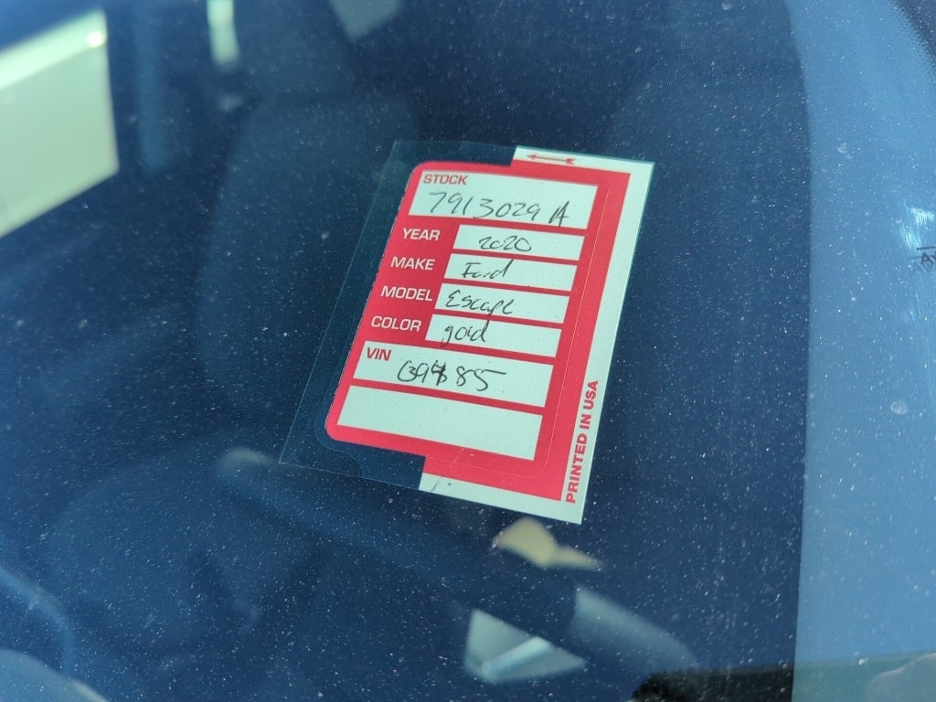2020 Desert Gold Ford Escape SE This Ford Escape has many features and is well equipped including, 3.52 Axle Ratio, 4-Wheel Disc Brakes, 6 Speakers, ABS brakes, Adaptive Cruise Control w/Stop-and-Go, Air Conditioning, Alloy wheels, AM/FM radio: SiriusXM, AM/FM Stereo, Auto High-beam Headlights, Automatic temperature control, Brake assist, Bumpers: body-color, Compass, Delay-off headlights, Driver door bin, Driver vanity mirror, Dual front impact airbags, Dual front side impact airbags, Electronic Stability Control, Emergency communication system: SYNC 3 911 Assist, Equipment Group 200A, Exterior Parking Camera Rear, Ford Co-Pilot360 Assist, FordPass Connect, Four wheel independent suspension, Front anti-roll bar, Front Bucket Seats, Front Center Armrest, Front reading lights, Fully automatic headlights, Heated door mirrors, Heated front seats, Heated Unique Cloth Front Bucket Seats, Illuminated entry, Knee airbag, Low tire pressure warning, Occupant sensing airbag, Outside temperature display, Overhead airbag, Overhead console, Panic alarm, Passenger door bin, Passenger vanity mirror, Power door mirrors, Power driver seat, Power steering, Power windows, Radio data system, Rear anti-roll bar, Rear reading lights, Rear seat center armrest, Rear window defroster, Rear window wiper, Remote keyless entry, Speed control, Speed-sensing steering, Speed-Sensitive Wipers, Split folding rear seat, Spoiler, Steering wheel mounted audio controls, SYNC 3 Communications & Entertainment System, Tachometer, Telescoping steering wheel, Tilt steering wheel, Traction control, Trip computer, Variably intermittent wipers, Voice-Activated Touchscreen Navigation System, Wheels: 17 Shadow Silver-Painted Aluminum.