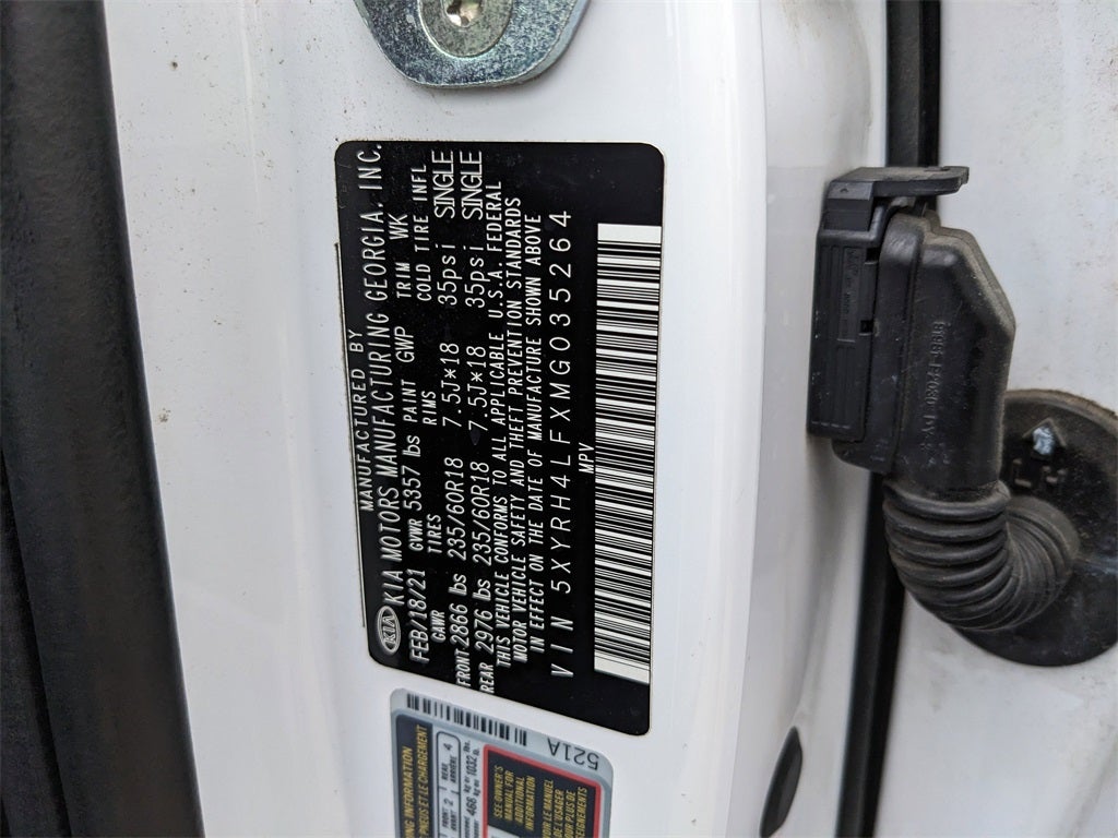 2021 Glacial White Pearl Kia Sorento EX This Kia Sorento has many features and is well equipped including, 18 Machine-Finished Alloy Wheels, 3.316 Axle Ratio, 3rd row seats: split-bench, 4-Wheel Disc Brakes, 6 Speakers, ABS brakes, Air Conditioning, Alloy wheels, AM/FM radio: SiriusXM, Apple CarPlay & Android Auto, Auto High-beam Headlights, Automatic temperature control, Brake assist, Bumpers: body-color, Carpeted Floor Mats, Delay-off headlights, Driver door bin, Driver vanity mirror, Dual front impact airbags, Dual front side impact airbags, Electronic Stability Control, Exterior Parking Camera Rear, Four wheel independent suspension, Front anti-roll bar, Front Bucket Seats, Front Center Armrest, Front dual zone A/C, Front fog lights, Front reading lights, Fully automatic headlights, Heated door mirrors, Heated Front Bucket Seats, Heated front seats, Illuminated entry, Knee airbag, Leather Shift Knob, Leather steering wheel, Low tire pressure warning, Occupant sensing airbag, Outside temperature display, Overhead airbag, Overhead console, Panic alarm, Passenger door bin, Passenger vanity mirror, Power door mirrors, Power driver seat, Power Liftgate, Power steering, Power windows, Premium Leatherette Seat Trim, Radio data system, Radio: AM/FM Audio System, Rear air conditioning, Rear anti-roll bar, Rear reading lights, Rear window defroster, Rear window wiper, Remote keyless entry, Roof rack: rails only, Security system, Speed control, Speed-sensing steering, Split folding rear seat, Spoiler, Steering wheel mounted audio controls, Tachometer, Telescoping steering wheel, Tilt steering wheel, Traction control, Trip computer, Turn signal indicator mirrors, Variably intermittent wipers.