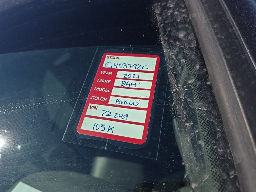 2021 Granite Crystal Metallic Clearcoat Ram 2500 Big Horn This Ram 2500 has many features and is well equipped including, 2 Way Rear Headrest Seat, 3.73 Axle Ratio, 4 Way Front Headrests, 4-Wheel Disc Brakes, 40/20/40 Split Bench Seat, 6 Speakers, ABS brakes, Active Noise Control System, Air Conditioning, AM/FM radio, Brake assist, Bumpers: chrome, Center Hub, Center Stack Storage Drawer, Chrome Flat Cab-Length Side Steps, Cloth 40/20/40 Bench Seat, Compass, Delay-off headlights, Driver door bin, Dual front impact airbags, Dual front side impact airbags, Electronic Stability Control, Electronically Controlled Throttle, Front anti-roll bar, Front Center Armrest w/Storage, Front License Plate Bracket, Front reading lights, Fully automatic headlights, GPS Antenna Input, Heated door mirrors, Illuminated entry, Integrated Voice Command w/Bluetooth®, Low tire pressure warning, Manual Adjust 4-Way Driver Seat, Manufacturer's Statement of Origin, Occupant sensing airbag, Outside temperature display, Overhead airbag, Overhead console, Panic alarm, ParkView Rear Back-Up Camera, Passenger door bin, Passenger vanity mirror, Power door mirrors, Power steering, Power windows, Quick Order Package 2HZ Big Horn, Radio data system, Radio: Uconnect 3 w/5 Display, Rear anti-roll bar, Rear Folding Seat, Rear seat center armrest, Rear step bumper, Remote keyless entry, Speed control, Tachometer, Tilt steering wheel, Tip Start, Tow Hooks, Traction control, Trip computer, Turn signal indicator mirrors, Variably intermittent wipers, Vendor Painted Cargo Box Tracking, Voltmeter, Wheels: 18 x 8.0 Steel Chrome Clad.