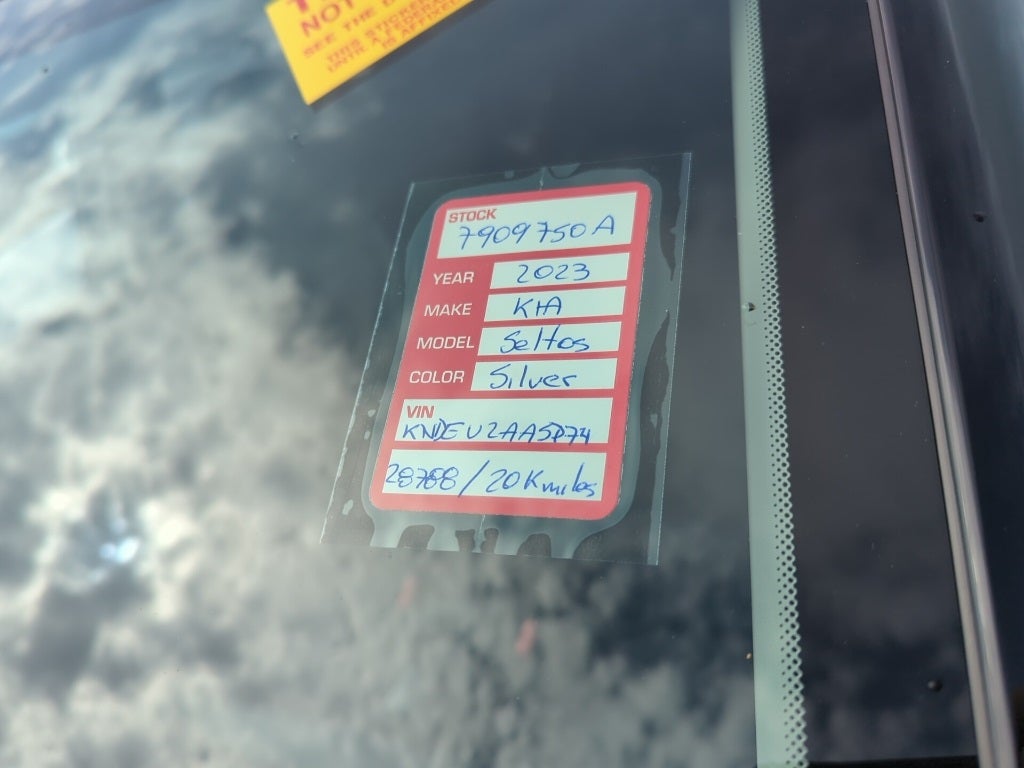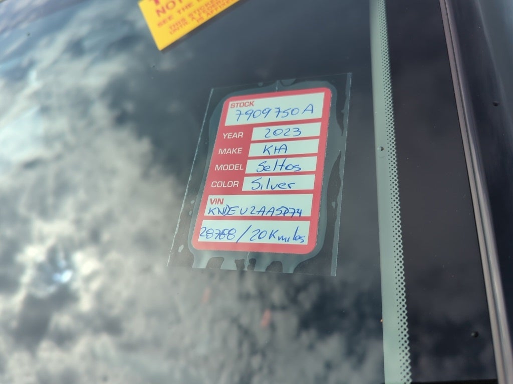 2023 Steel Gray Kia Seltos S This Kia Seltos has many features and is well equipped including, Kia Certified Pre-Owned Certified, 4-Wheel Disc Brakes, 6 Speakers, 6.052 Axle Ratio, ABS brakes, Air Conditioning, Alloy wheels, AM/FM radio, Apple CarPlay & Android Auto, Auto High-beam Headlights, Automatic temperature control, Brake assist, Bumpers: body-color, Carpet Floor Mats, Cloth & Sofino Premium Leatherette Seat Trim, Cross Bars, Delay-off headlights, Driver door bin, Driver vanity mirror, Dual front impact airbags, Dual front side impact airbags, Electronic Stability Control, Emergency communication system: 911 Connect, Exterior Parking Camera Rear, Front anti-roll bar, Front Bucket Seats, Front Center Armrest, Front fog lights, Front reading lights, Front wheel independent suspension, Fully automatic headlights, Heated door mirrors, Illuminated entry, Illuminated Scuff Plate, Leather Shift Knob, Low tire pressure warning, Mud Guards, Occupant sensing airbag, Outside temperature display, Overhead airbag, Overhead console, Panic alarm, Passenger door bin, Passenger vanity mirror, Power door mirrors, Power steering, Power windows, Radio: AM/FM/MP3 Display Audio, Rear seat center armrest, Rear window defroster, Rear window wiper, Remote keyless entry, Security system, Speed control, Speed-sensing steering, Split folding rear seat, Spoiler, Steering wheel mounted audio controls, Tachometer, Telescoping steering wheel, Tilt steering wheel, Traction control, Trip computer, Turn signal indicator mirrors, Variably intermittent wipers, Wheels: 17 Alloy w/Dark Gray Finish.