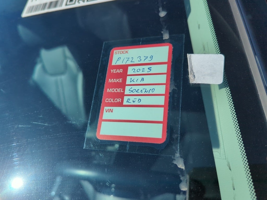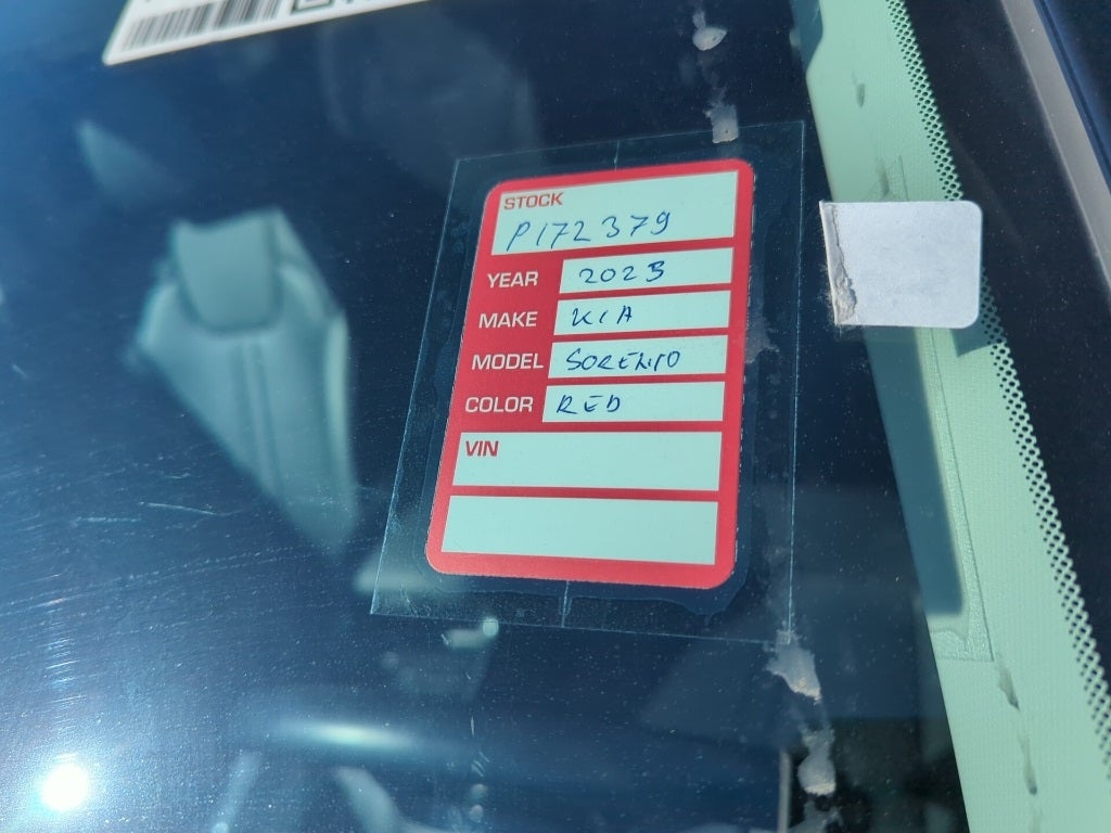 2023 Passion Red Tintcoat Kia Sorento S This Kia Sorento has many features and is well equipped including, Kia Certified Pre-Owned Certified, 3.798 Axle Ratio, 3rd row seats: split-bench, 4-Wheel Disc Brakes, 6 Speakers, ABS brakes, Air Conditioning, Alloy wheels, AM/FM radio: SiriusXM, Apple CarPlay & Android Auto, Auto High-beam Headlights, Automatic temperature control, Brake assist, Bumpers: body-color, Cargo Cover, Cargo Net, Carpet Floor Mats, Delay-off headlights, Driver door bin, Driver vanity mirror, Dual front impact airbags, Dual front side impact airbags, Electronic Stability Control, Emergency communication system, Exterior Parking Camera Rear, Folding Cargo Tray, Four wheel independent suspension, Front anti-roll bar, Front Bucket Seats, Front Center Armrest, Front dual zone A/C, Front reading lights, Fully automatic headlights, Heated door mirrors, Heated Front Bucket Seats, Heated front seats, Illuminated entry, Illuminated Scuff Plates, Knee airbag, Leather Shift Knob, Leather steering wheel, LED Interior Lighting, Low tire pressure warning, Navigation System, Occupant sensing airbag, Outside temperature display, Overhead airbag, Overhead console, Panic alarm, Panoramic Power Sunroof w/Power Sunshade, Panoramic Sunroof Package, Passenger door bin, Passenger vanity mirror, Power door mirrors, Power driver seat, Power steering, Power windows, Radio data system, Radio: AM/FM Audio System, Rear air conditioning, Rear anti-roll bar, Rear reading lights, Rear seat center armrest, Rear window defroster, Rear window wiper, Remote keyless entry, Roof rack: rails only, Security system, Smart Key w/ Push Button and Remote Start, Speed control, Speed-sensing steering, Split folding rear seat, Spoiler, Steering wheel mounted audio controls, SynTex Artificial Leather Seat Trim, Tachometer, Telescoping steering wheel, Tilt steering wheel, Traction control, Trip computer, Turn signal indicator mirrors, Variably intermittent wipers, Wheel Locks, Wheels: 7.5J x 18 Machine-Finished Alloy.