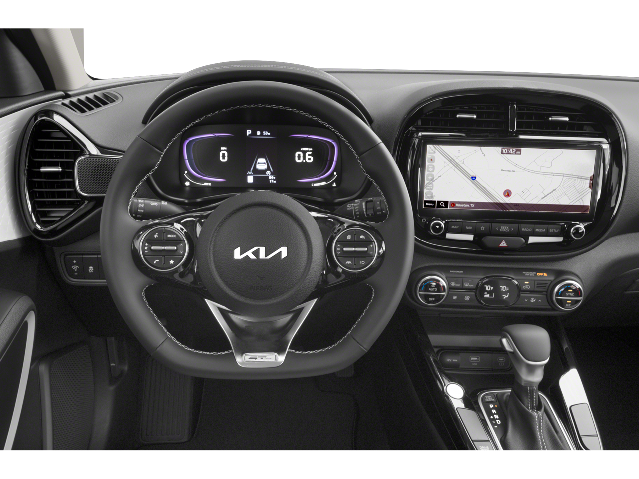 2023 Surf Blue w/Black Roof Kia Soul GT-Line This Kia Soul has many features and is well equipped including, Kia Certified Pre-Owned Certified, 18 Alloy Wheels, 4-Wheel Disc Brakes, 6 Speakers, ABS brakes, Air Conditioning, Alloy wheels, AM/FM radio: SiriusXM, Apple CarPlay & Android Auto, Auto High-beam Headlights, Automatic temperature control, Black & White Interior Color Package, Brake assist, Bumpers: body-color, Carpeted Floor Mats, Combination Cloth/Artificial Leather Seat Trim, Compass, Delay-off headlights, Driver door bin, Driver vanity mirror, Dual front impact airbags, Dual front side impact airbags, Electronic Stability Control, Emergency communication system, Exterior Parking Camera Rear, Front anti-roll bar, Front Bucket Seats, Front Center Armrest, Front dual zone A/C, Front reading lights, Front wheel independent suspension, Fully automatic headlights, GT-Line Designer Package, Heated door mirrors, Illuminated entry, Leather Shift Knob, Leather steering wheel, Low tire pressure warning, Navigation System, Occupant sensing airbag, Outside temperature display, Overhead airbag, Overhead console, Panic alarm, Passenger door bin, Passenger vanity mirror, Power door mirrors, Power moonroof, Power steering, Power windows, Radio data system, Radio: AM/FM/MP3/HD Audio System, Rear seat center armrest, Rear window defroster, Rear window wiper, Remote keyless entry, Speed control, Speed-sensing steering, Split folding rear seat, Sport steering wheel, Steering wheel mounted audio controls, Tachometer, Telescoping steering wheel, Tilt steering wheel, Traction control, Trip computer, Turn signal indicator mirrors, Variably intermittent wipers.