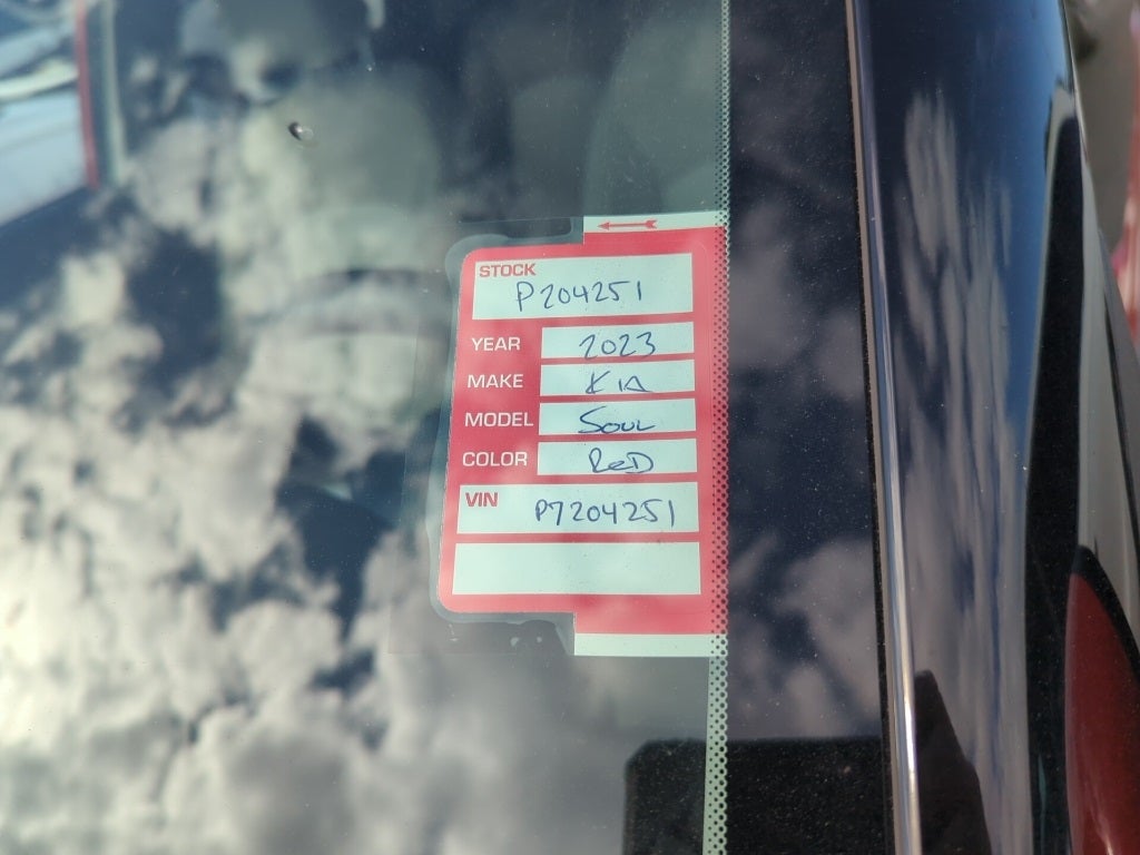 2023 Inferno Red Kia Soul LX This Kia Soul has many features and is well equipped including, Kia Certified Pre-Owned Certified, 16 Alloy Wheels, 16 Steel Wheels, 4-Wheel Disc Brakes, 6 Speakers, ABS brakes, Air Conditioning, AM/FM radio, Apple CarPlay & Android Auto, Auto High-beam Headlights, Brake assist, Bumpers: body-color, Carpeted Floor Mats, Compass, Delay-off headlights, Driver door bin, Driver vanity mirror, Dual front impact airbags, Dual front side impact airbags, Electronic Stability Control, Exterior Parking Camera Rear, Front anti-roll bar, Front Bucket Seats, Front Center Armrest, Front reading lights, Front wheel independent suspension, Fully automatic headlights, Illuminated entry, Low tire pressure warning, Occupant sensing airbag, Outside temperature display, Overhead airbag, Overhead console, Panic alarm, Passenger door bin, Passenger vanity mirror, Power door mirrors, Power steering, Power windows, Radio data system, Radio: AM/FM/MP3/HD Audio System, Rear window defroster, Rear window wiper, Remote keyless entry, Speed control, Speed-sensing steering, Split folding rear seat, Steering wheel mounted audio controls, Tachometer, Telescoping steering wheel, Tilt steering wheel, Traction control, Trip computer, Variably intermittent wipers, Woven & Tricot Cloth Seat Trim.
