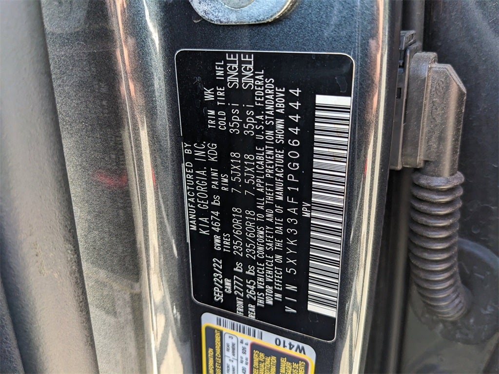 2023 Gravity Gray Kia Sportage EX This Kia Sportage has many features and is well equipped including, Kia Certified Pre-Owned Certified, 4-Wheel Disc Brakes, 6 Speakers, ABS brakes, Air Conditioning, Alloy wheels, AM/FM radio: SiriusXM, Apple CarPlay & Android Auto, Auto High-beam Headlights, Automatic temperature control, Axle Ratio: 3.648, Brake assist, Bumpers: body-color, Carpeted Floor Mats, Compass, Delay-off headlights, Driver door bin, Driver vanity mirror, Dual front impact airbags, Dual front side impact airbags, Electronic Stability Control, Emergency communication system, Four wheel independent suspension, Front anti-roll bar, Front Bucket Seats, Front Center Armrest, Front dual zone A/C, Fully automatic headlights, Heated door mirrors, Heated Front Bucket Seats, Heated front seats, Illuminated entry, Leather Shift Knob, Leather steering wheel, Leatherette Seat Trim, Low tire pressure warning, Navigation System, Occupant sensing airbag, Outside temperature display, Overhead airbag, Overhead console, Panic alarm, Passenger door bin, Passenger vanity mirror, Power door mirrors, Power driver seat, Power steering, Power windows, Radio: AM/FM/HD Audio System, Rain sensing wipers, Rear anti-roll bar, Rear seat center armrest, Rear window defroster, Rear window wiper, Remote keyless entry, Security system, Speed control, Speed-sensing steering, Split folding rear seat, Spoiler, Steering wheel mounted audio controls, Tachometer, Telescoping steering wheel, Tilt steering wheel, Traction control, Trip computer, Turn signal indicator mirrors, Variably intermittent wipers, Wheels: 18 Machine Finish Alloy.