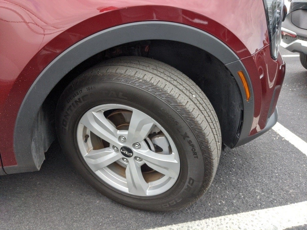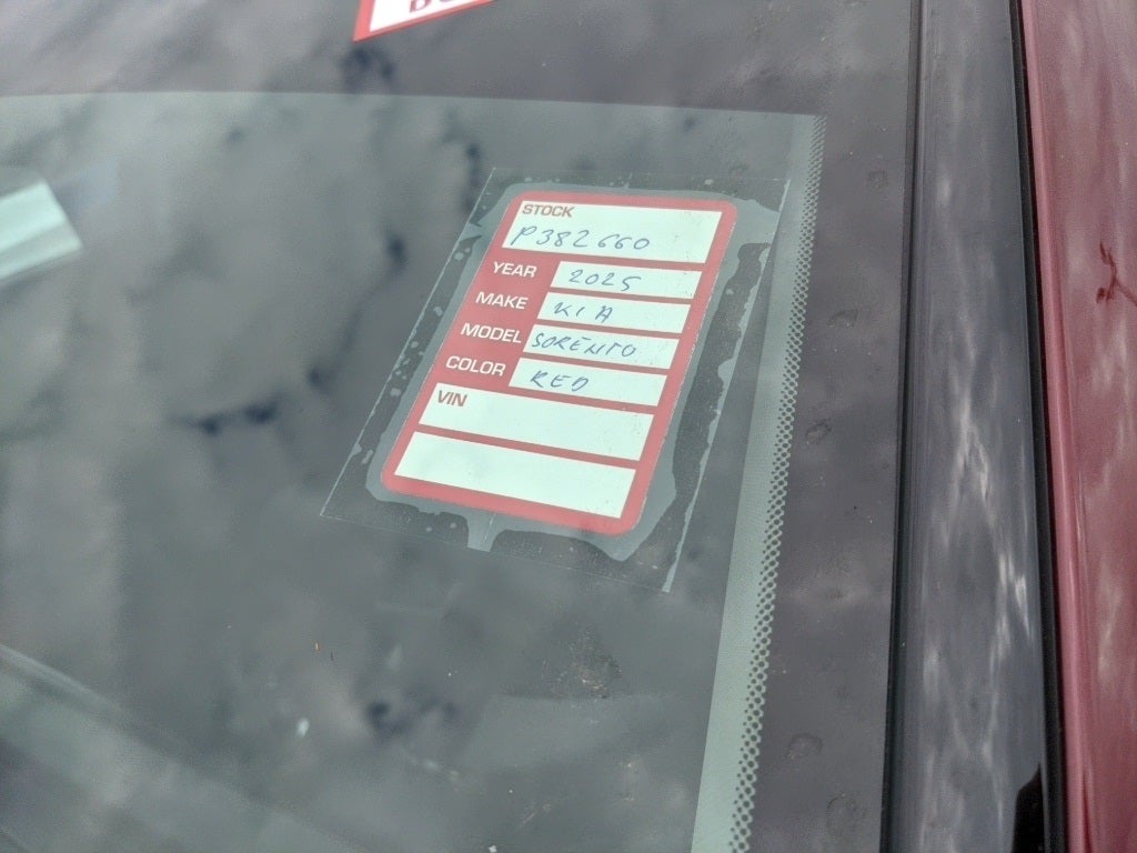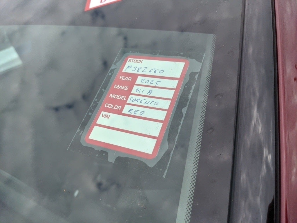 2025 Dawning Red Kia Sorento LX This Kia Sorento has many features and is well equipped including, Kia Certified Pre-Owned Certified, 17 Alloy Wheels, 3rd row seats: split-bench, 4-Wheel Disc Brakes, 6 Speakers, ABS brakes, Air Conditioning, Alloy wheels, AM/FM radio: SiriusXM, Apple CarPlay & Android Auto, Auto High-beam Headlights, Brake assist, Bumpers: body-color, Cargo Net, Carpeted Floor Mats, Cloth Seat Trim, Delay-off headlights, Driver door bin, Driver vanity mirror, Dual front impact airbags, Dual front side impact airbags, Electronic Stability Control, Emergency communication system: 911 Connect, Exterior Parking Camera Rear, Four wheel independent suspension, Front anti-roll bar, Front Bucket Seats, Front Center Armrest, Front reading lights, Fully automatic headlights, Heated door mirrors, Illuminated entry, Knee airbag, Low tire pressure warning, Occupant sensing airbag, Outside temperature display, Overhead airbag, Overhead console, Panic alarm, Passenger door bin, Passenger vanity mirror, Power door mirrors, Power steering, Power windows, Radio data system, Radio: AM/FM Standard Sound System, Rear anti-roll bar, Rear reading lights, Rear seat center armrest, Rear side impact airbag, Rear window defroster, Rear window wiper, Remote keyless entry, Security system, Speed control, Speed-sensing steering, Split folding rear seat, Spoiler, Steering wheel mounted audio controls, Tachometer, Telescoping steering wheel, Tilt steering wheel, Traction control, Trip computer, Turn signal indicator mirrors, Variably intermittent wipers.
